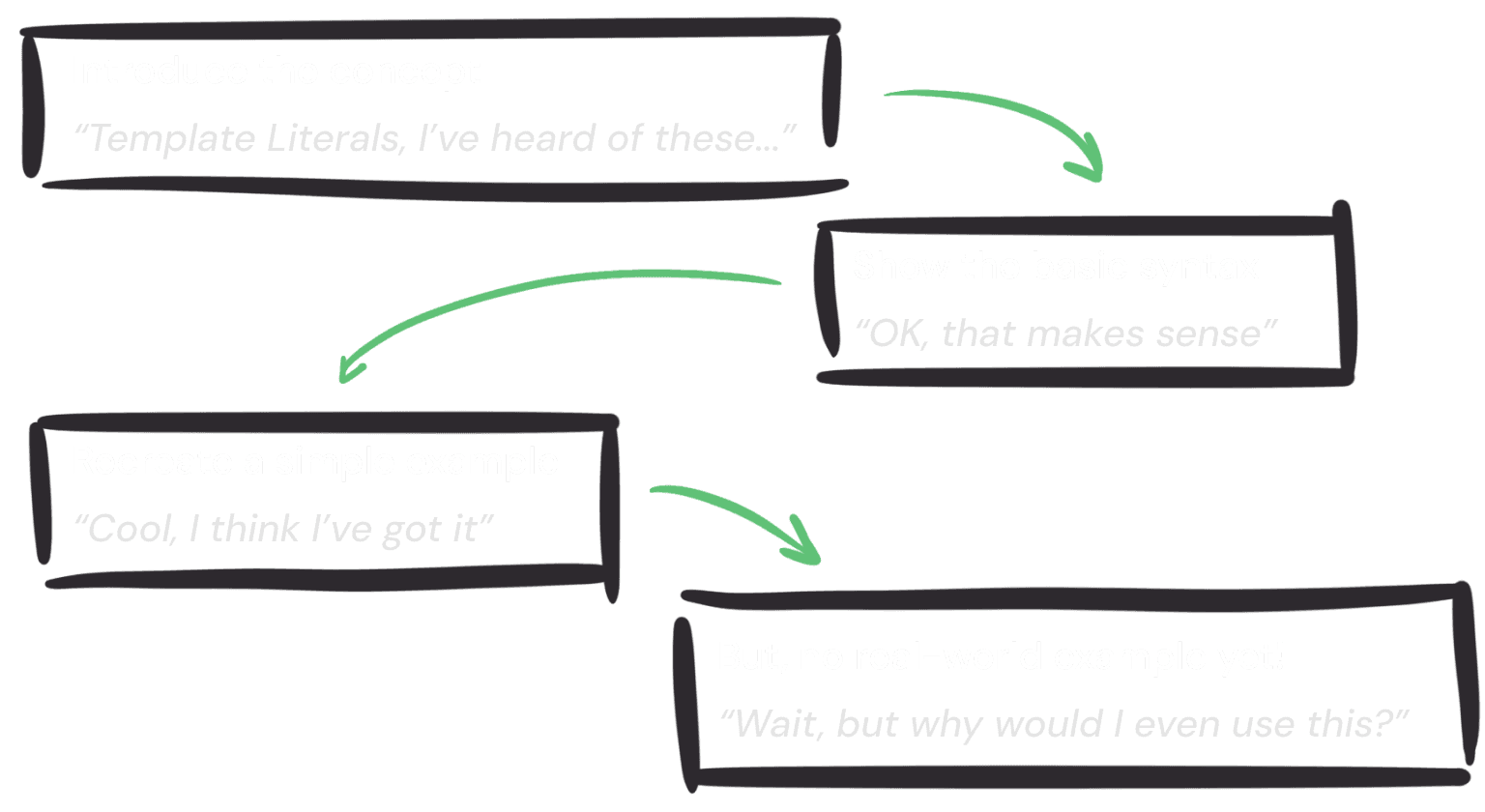 When it later came to pricing and packaging the first three self-paced workshops, we anchored against the full workshop price. We wanted the pricing to reflect the high value of material, but keep it within a range that would be an easy purchase decision for working developers and teams. We also wanted to avoid a promise of an infinite future of new content based on a single purchase. The goal was to build a sustainable business, not just a product.