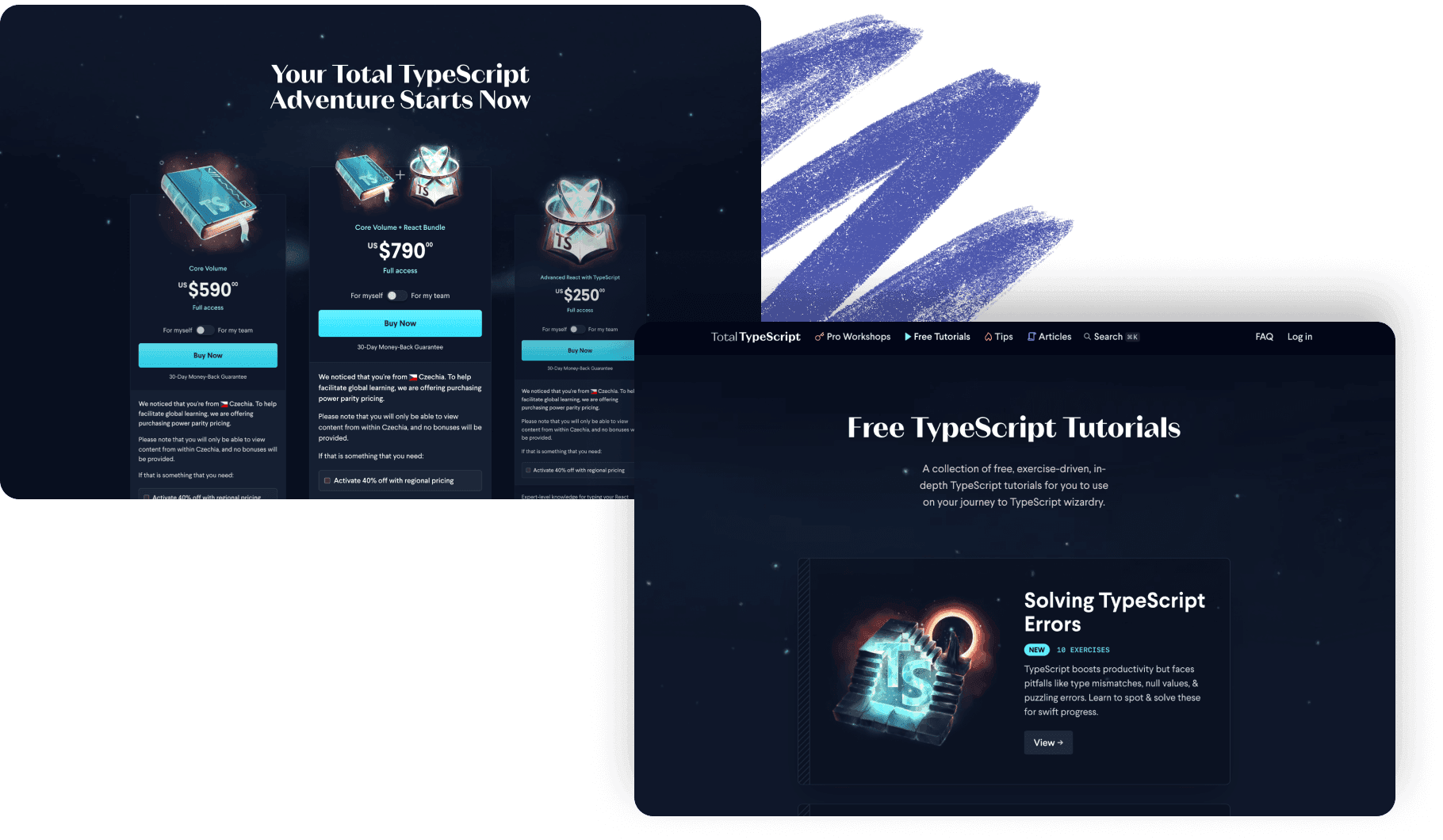 With Michelle’s amazing illustration work setting the tone, Vojta Holik first designed and built the landing page and has continued to help deliver a magical user experience throughout the Total TypeScript website.